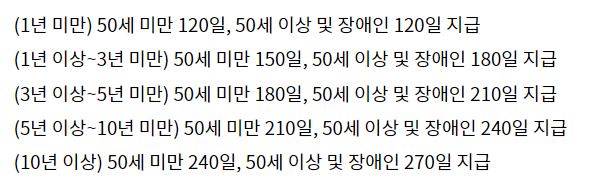 2. 지급일수- 지급일수는 고용보험 가입 기간에 따라 120일에서 270일까지 다양합니다. 이는 근로자의 나이와 보험 가입 기간에 따라 달라집니다.