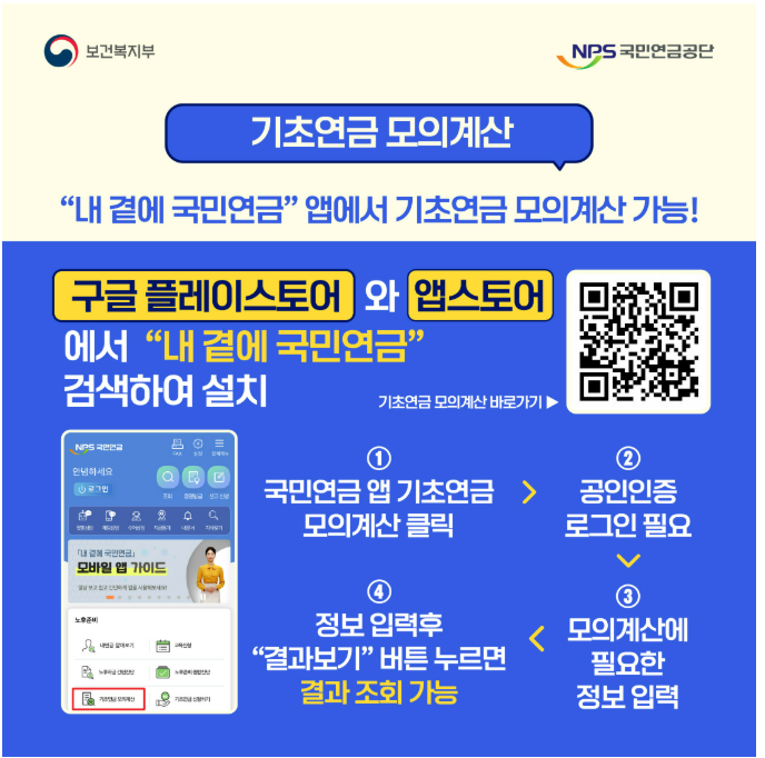 내곁에 국민연금 앱 설치 바로가기 기초연금: 만 65세 이상 어르신을 위한 정부 지원