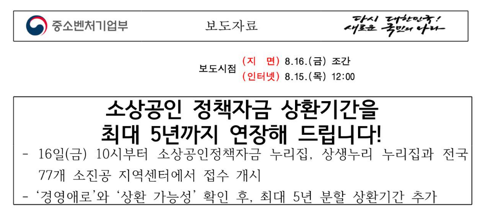 소상공인 분들 중에 경영에 애로사항이 있어 정책자금 상환에 어려움이 있으신 분들을 위해 상환방법을 변경하여 원활히 상환할 수 있도록 정부에서 지원해 주는 내용으로 정책자금을 받으신 소상공인 분들께서는 확인해 보시기 바랍니다.